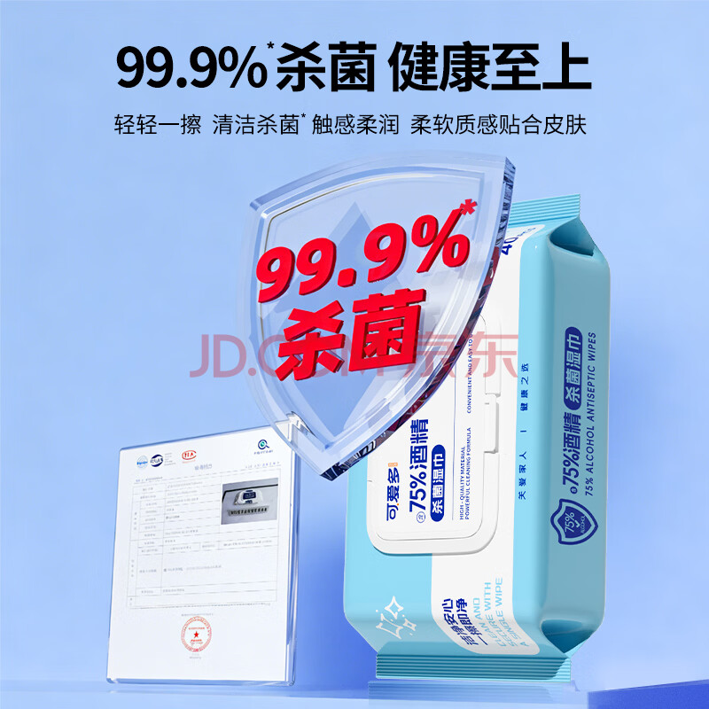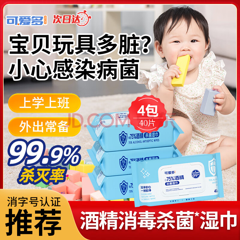 商品相册:可爱多酒精湿巾40抽*4包 杀菌消毒湿纸巾 家用办公便携 学生清洁湿巾第
