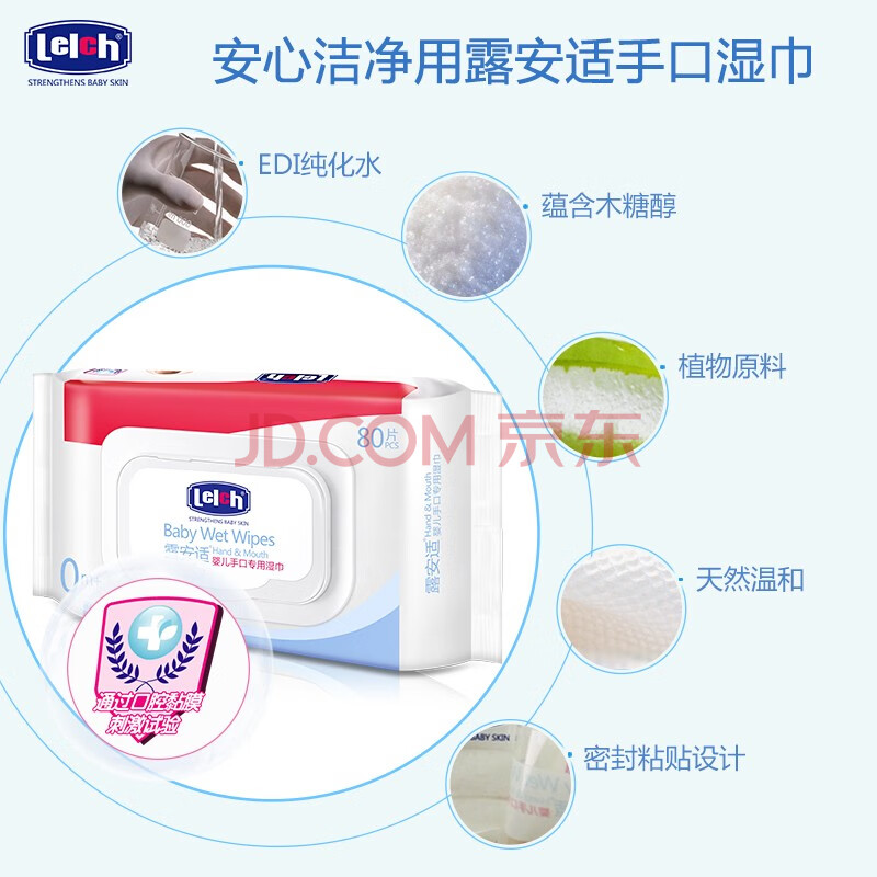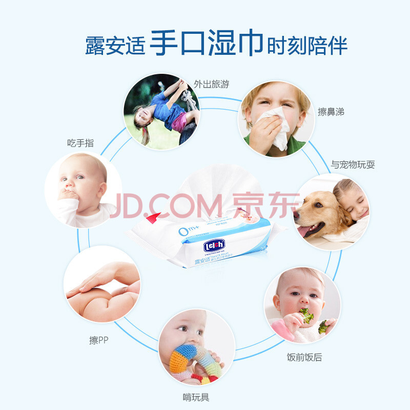 商品相册:露安适(Lelch)婴儿湿巾新生儿湿纸巾试用装便携小包随身装 无酒精清洁湿巾20抽第