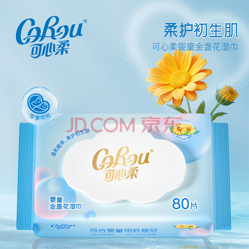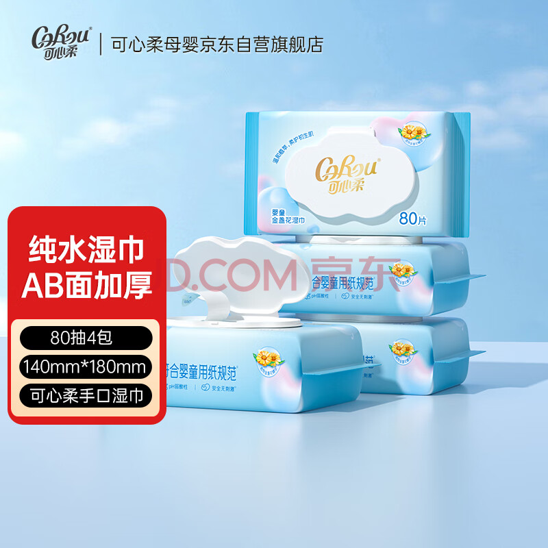 商品相册:可心柔(COROU)婴儿湿巾手口专用80抽4大包家庭装儿童宝宝新生儿纯水湿纸巾第