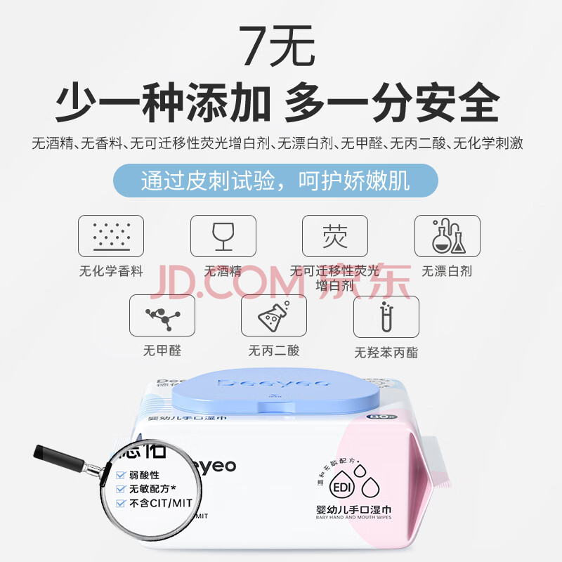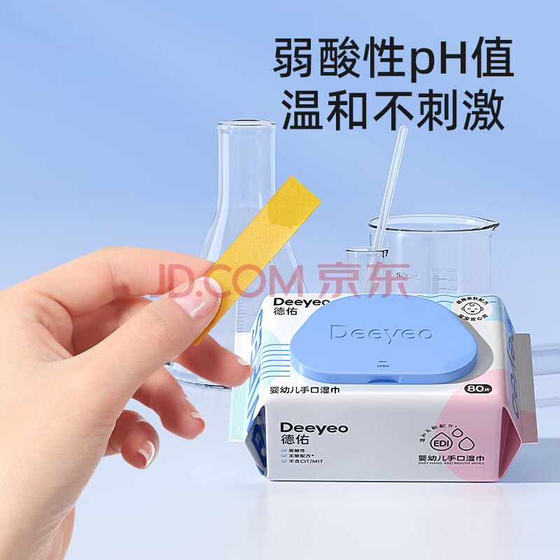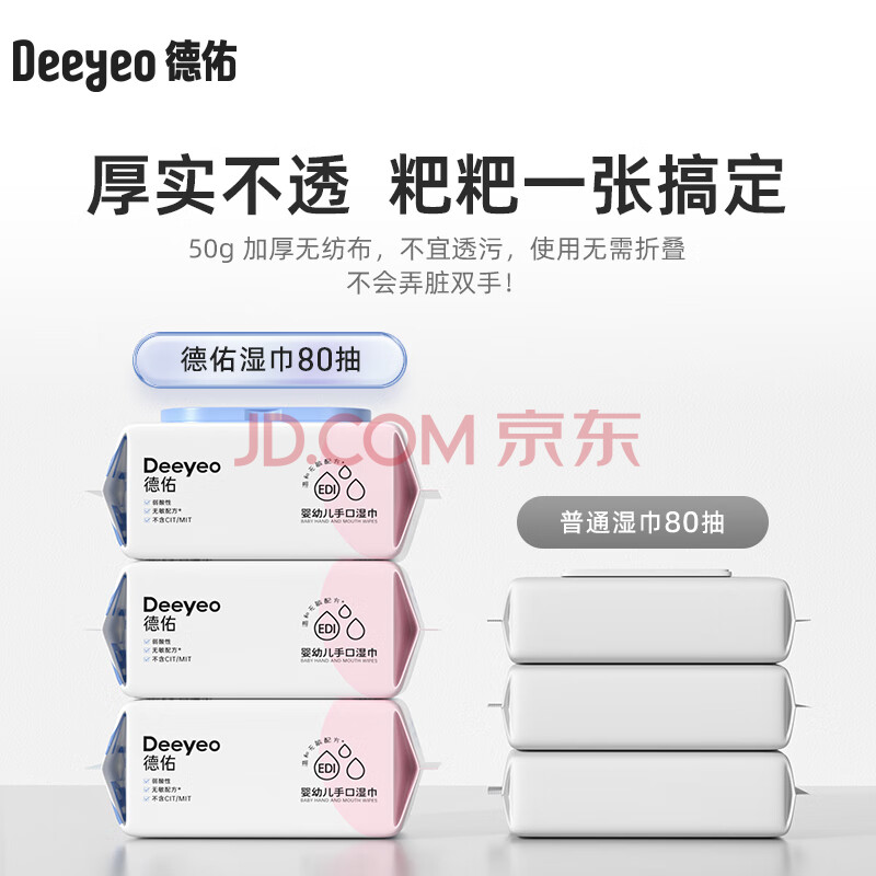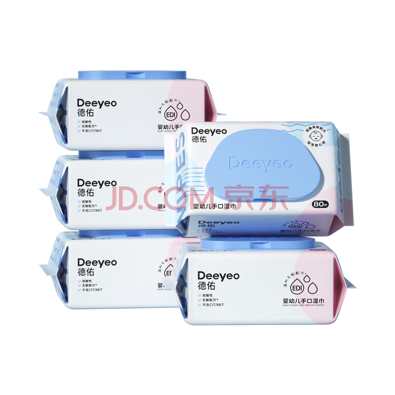 商品相册:德佑婴儿手口湿巾 儿童湿纸巾擦手口屁屁亲肤温和 80抽*5包第