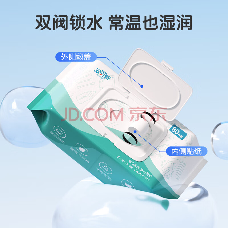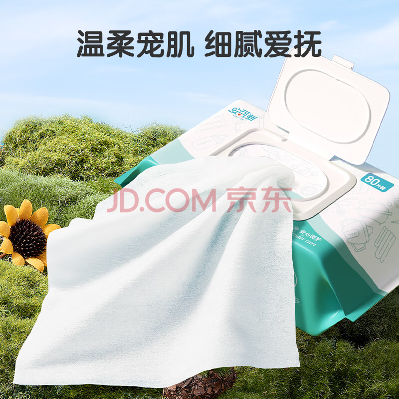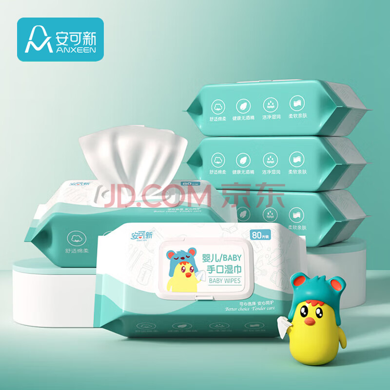 商品相册:安可新 婴儿湿巾手口湿纸巾80片*5包 新生儿纸巾宝宝柔湿巾第