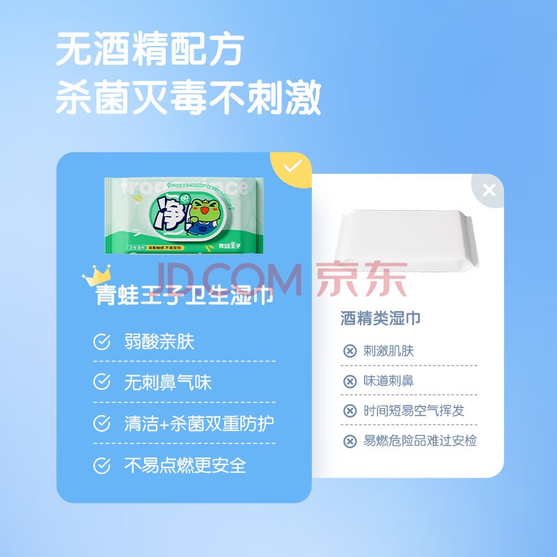 商品相册:青蛙王子99.9%消毒湿巾杀菌湿巾除菌湿纸巾无酒精宝宝卫生湿巾 80片*8包第