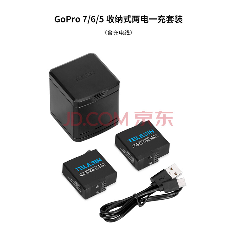 商品相册:TELESIN(泰迅)适配gopro8 7电池充电器Hero6 5配件三充两充多充 收纳式充电盒套装 两电一充第