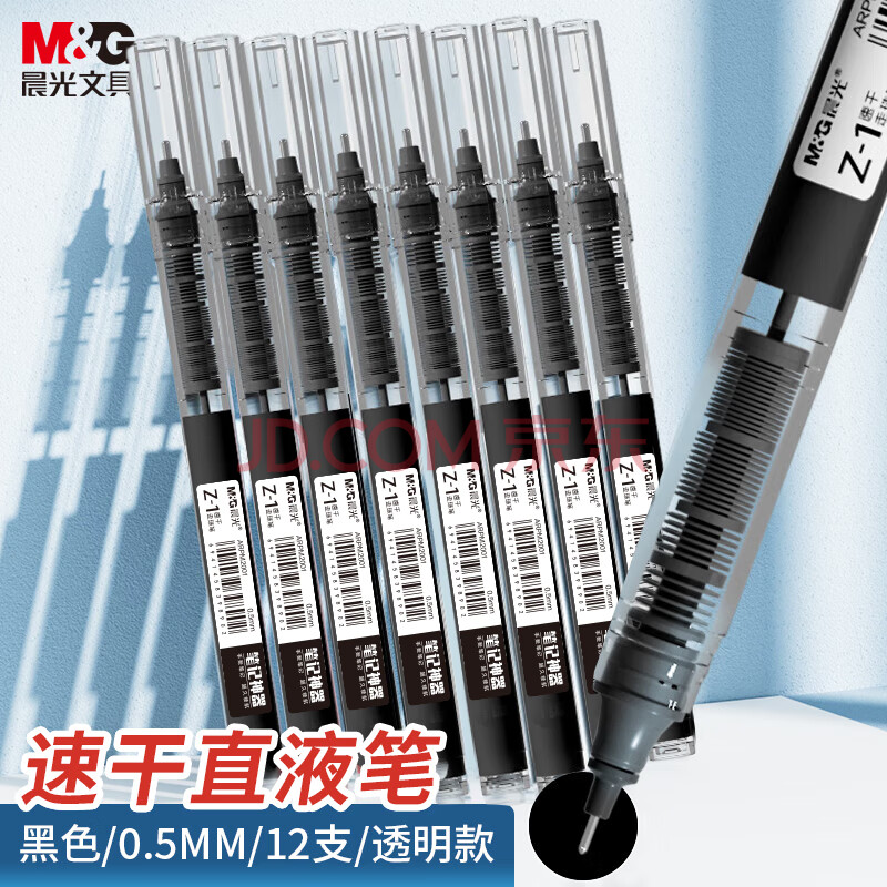 商品相册:晨光(M&G)直液式走珠笔速干笔签字笔 0.5mm全针管中性笔 学生商务水笔办公用品 黑色 12支/盒第