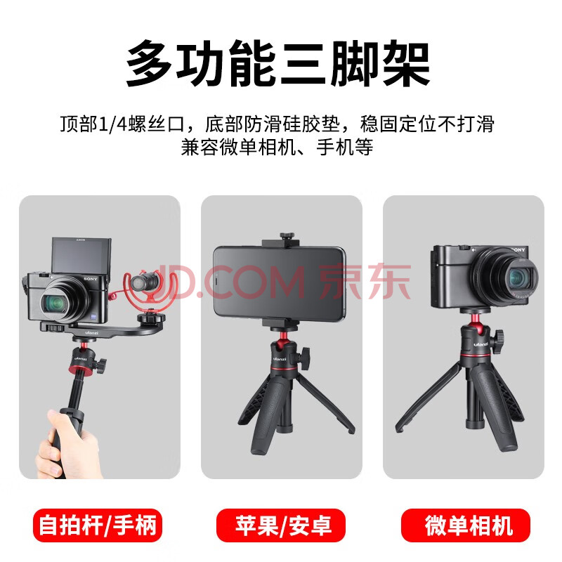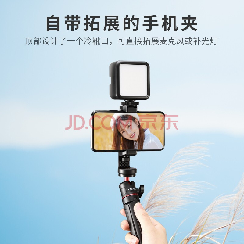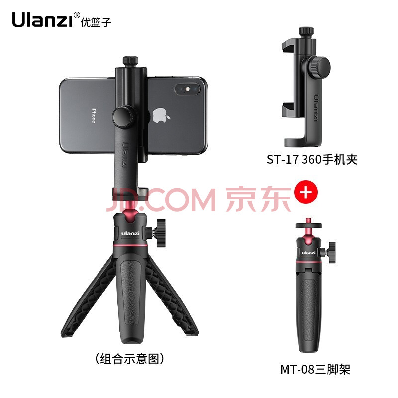 商品相册:ulanzi 优篮子 ST-17手机夹+MT-08三脚架手机Vlog套装360度冷热靴手机夹桌面横竖拍Vlog视频摄像第1张/共8