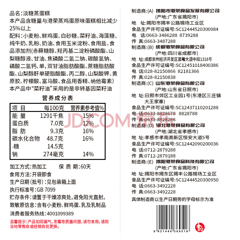 商品相册:港荣蒸蛋糕淡糖800g纯蛋糕面包零食饼干早餐中西式糕点甜品礼品盒物箱第1张/共5