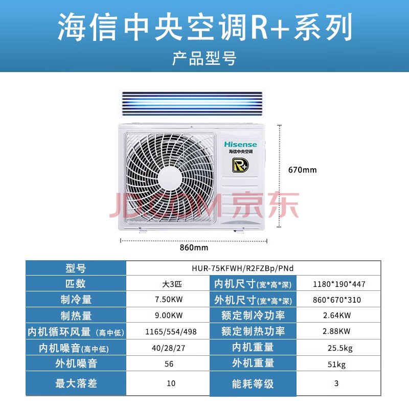 商品相册:海信(Hisense)大3匹变频风管机隐藏嵌入式 带净化模块R+系列 HUR-75KFWH/R2FZBp/PNd(不含安装费和辅材)第