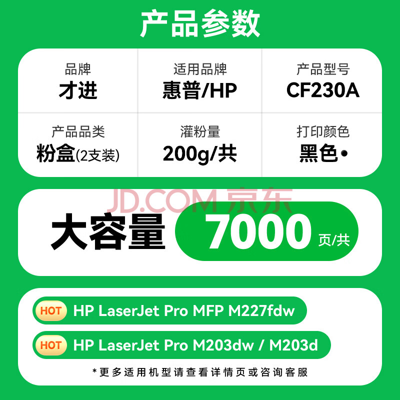 商品相册:才进适用惠普m227fdw硒鼓原装m203dw/dn/d粉盒m227d/sdn/fdn打印机碳粉hp30a墨盒cf230a墨粉laserjet pro mfp第