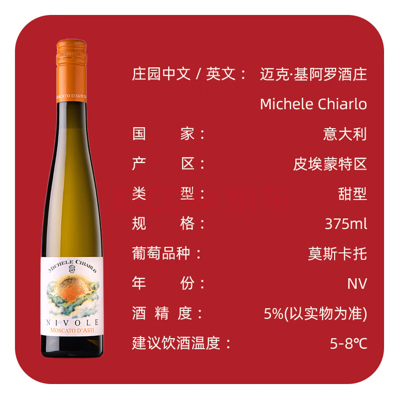 商品相册:迈克基阿罗意大利酒山中云皮莫斯卡托微泡甜白葡萄酒 375ml 单瓶 热门商品第
