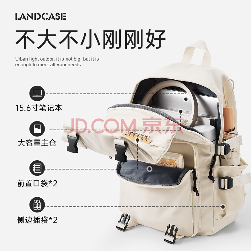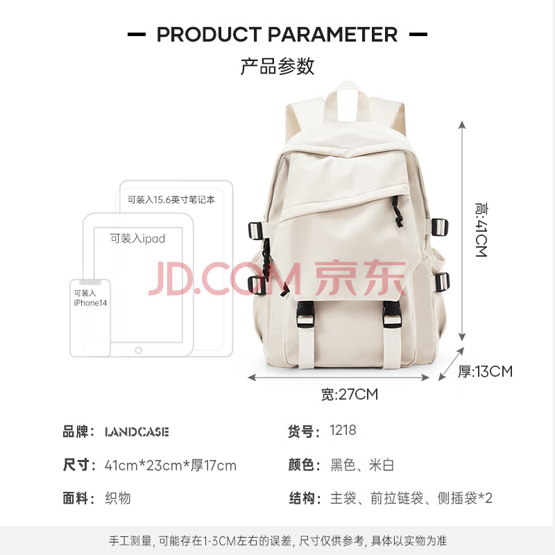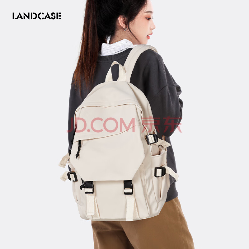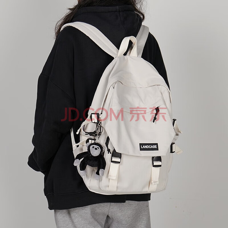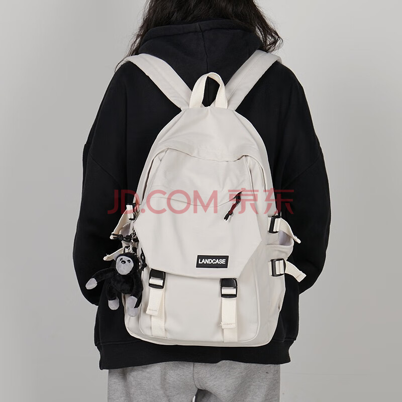 商品相册:Landcase书包男女初高中大学生背包学院风双肩包日系原宿百搭旅行包1218白第
