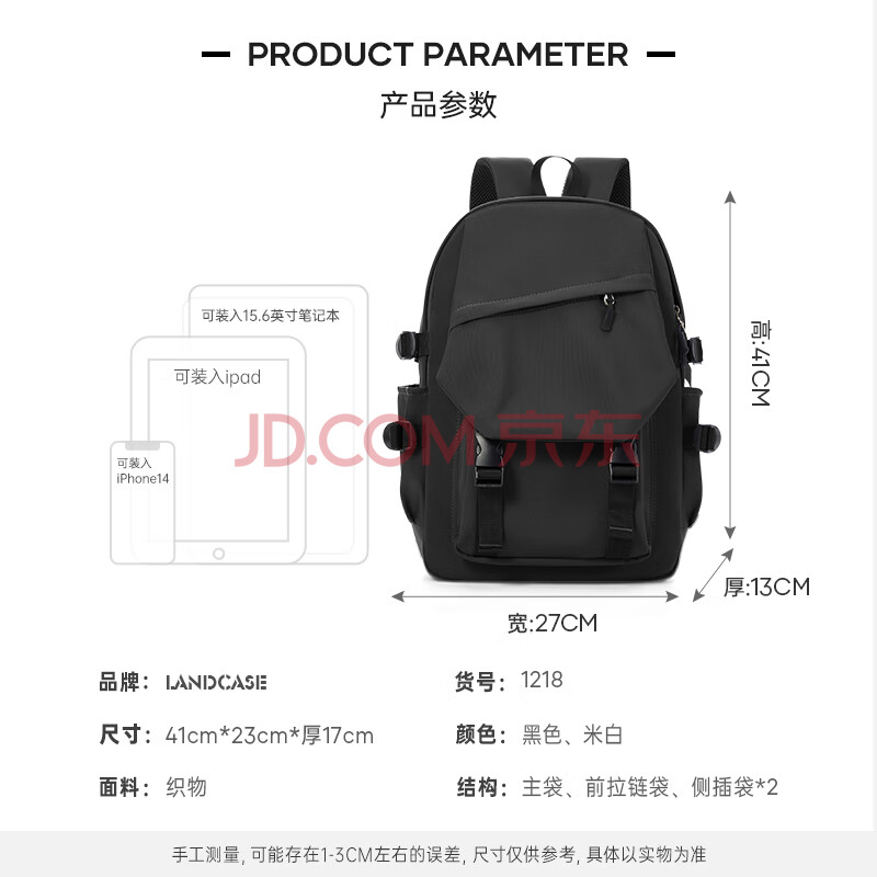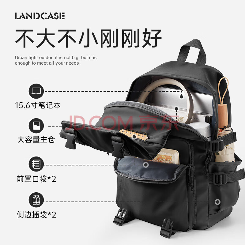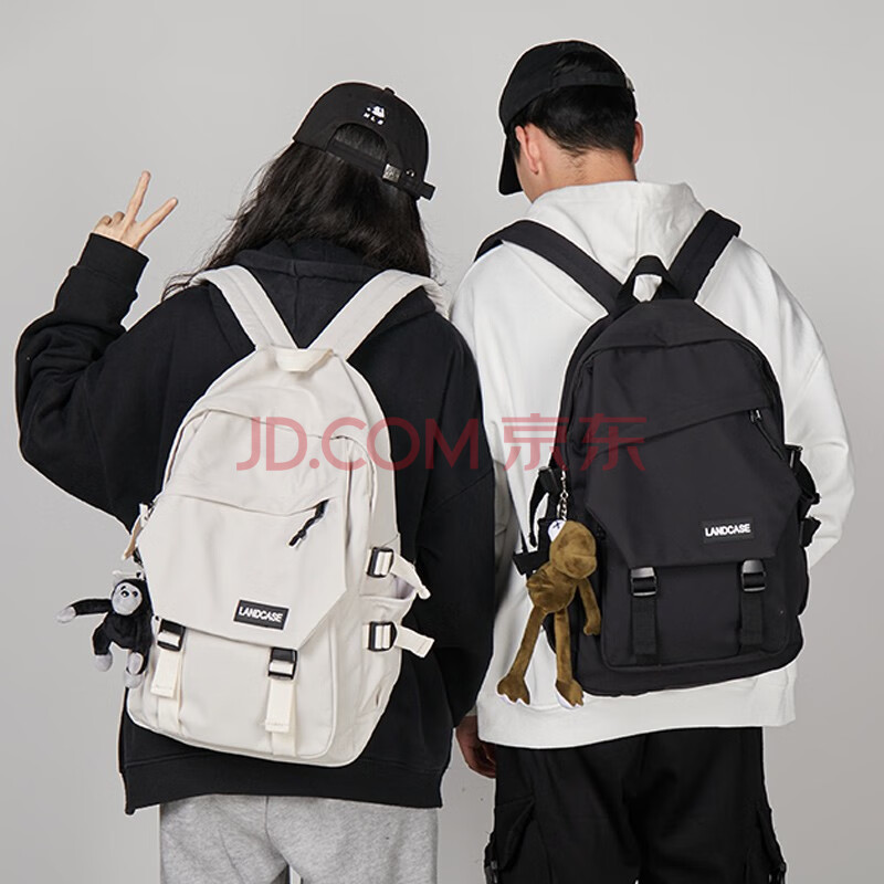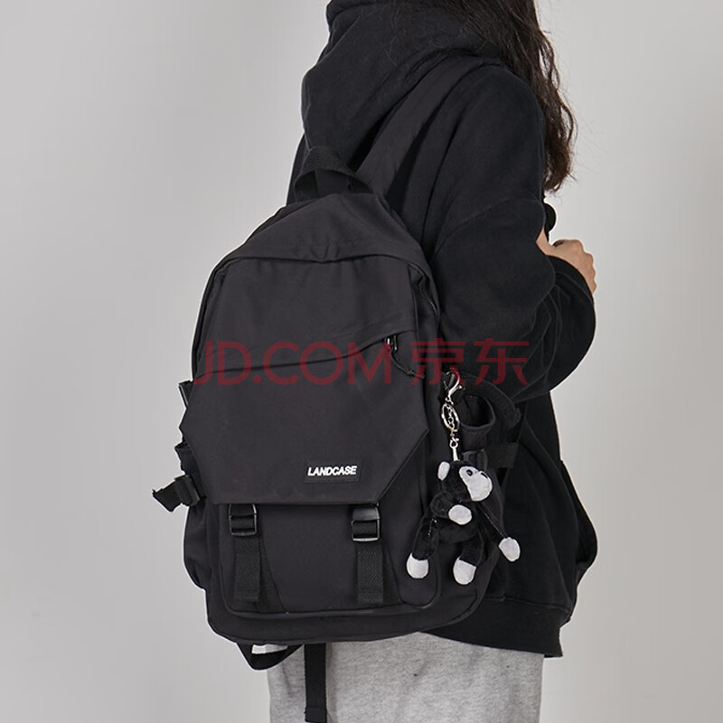 商品相册:Landcase中学生书包女韩版高中学生背包初中生百搭ins风男双肩包 1218黑色第
