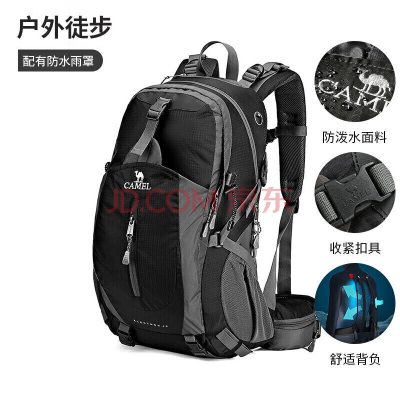 商品相册:骆驼(CAMEL)登山包户外男女运动双肩包防水旅游徒步爬山旅行书包 黑色第