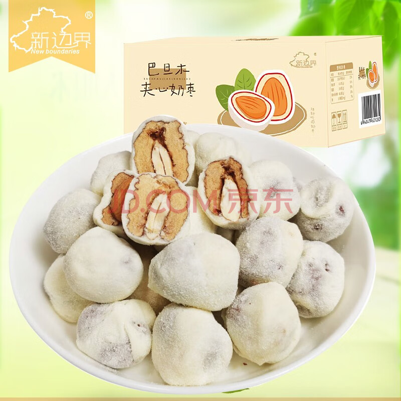 商品相册:新边界 巴旦木夹心奶枣400g 精美盒装网红奶枣无核枣休闲零食第