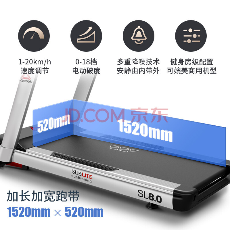 商品相册:锐步(Reebok)跑步机家庭用有氧爬坡减震智能家用跑步机健身房健身器材SL8.0DC第