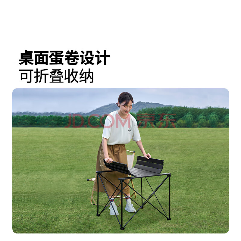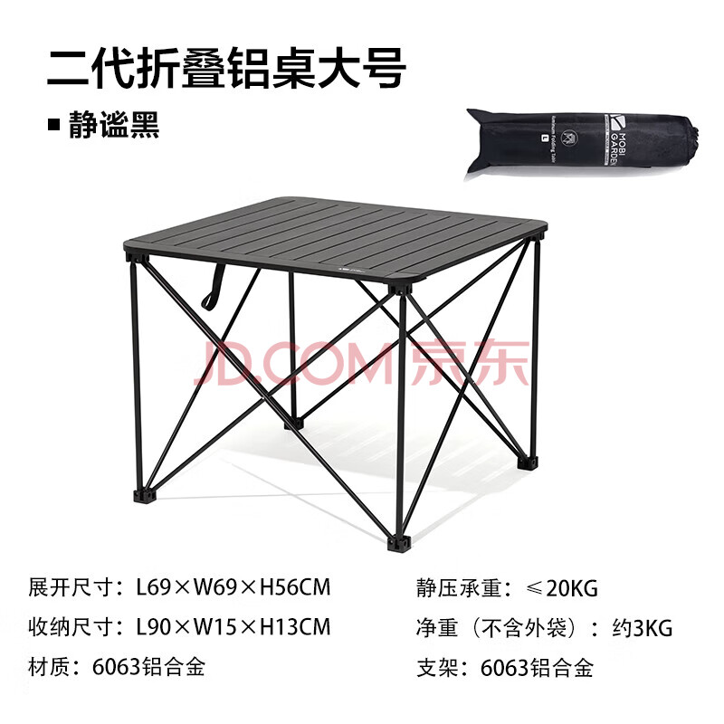 商品相册:牧高笛(MOBIGARDEN)折叠桌 户外露营轻量便携野餐桌铝合金折叠桌L NX20665043 静谧黑第
