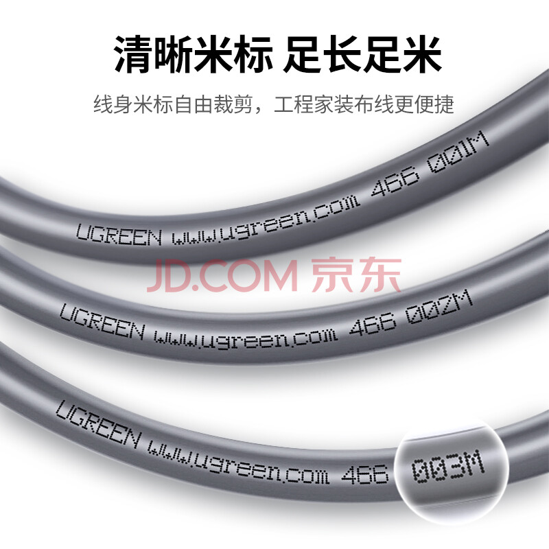 商品相册:绿联超五类千兆网线【0.50±0.008mm纯铜芯】CAT5e千兆非屏蔽箱线 家装POE监控工程布线灰色100米11253第