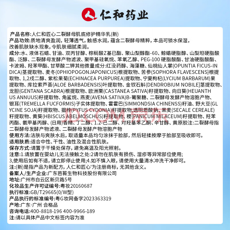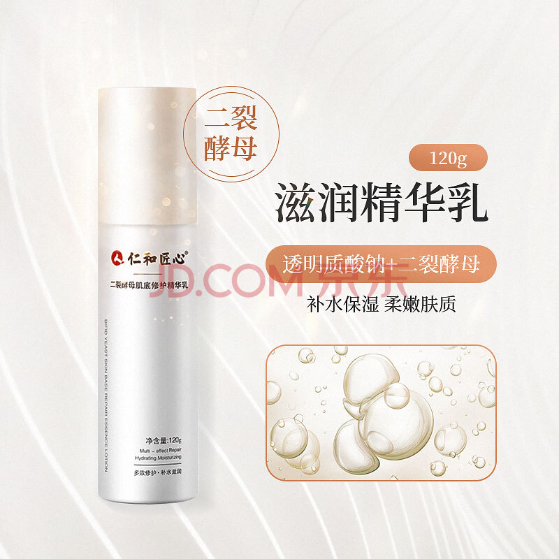 商品相册:仁和匠心二裂酵母精华乳液120g(男女春夏补水保湿清爽舒缓细腻毛孔化妆品)第