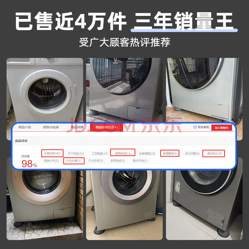 商品相册:爽威 洗衣机底座海尔LG松下小天鹅西门子滚筒波轮洗衣机通用脚垫增高防水防滑防震垫固定器底座ZGD3.5第