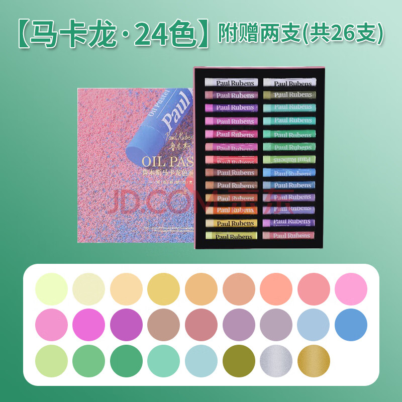 商品相册:鲁本斯(PaulRubens)马卡龙24色油画棒软性重彩油画棒套装儿童蜡笔美术炫彩涂鸦绘画可水洗0119147第