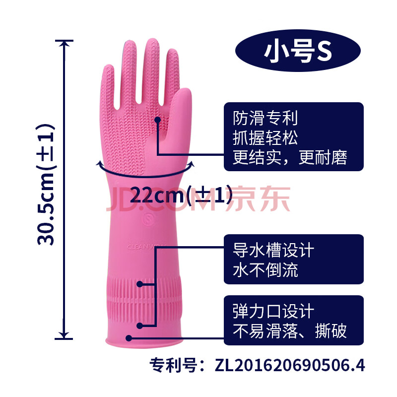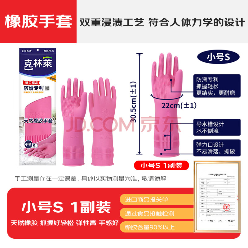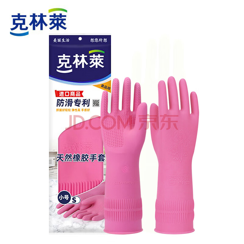 商品相册:克林莱天然橡胶手套S小号越南进口家务手套舒适防滑洗衣洗碗清洁食品用第1张/共9