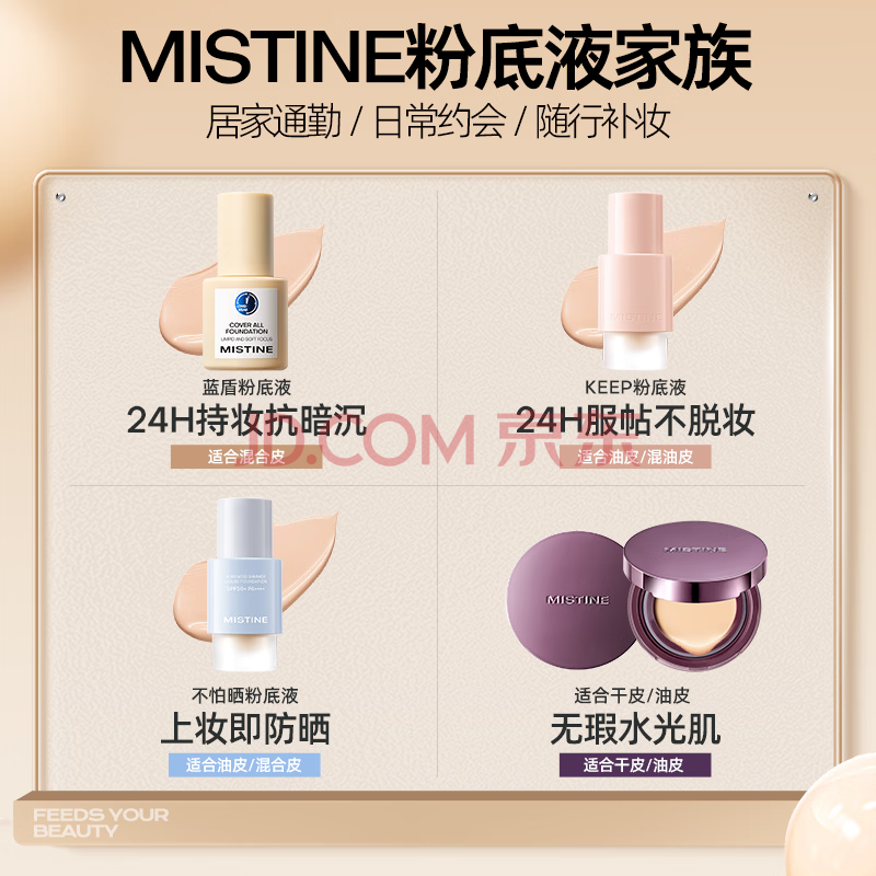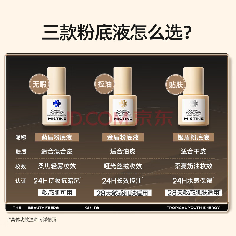 商品相册:Mistine蜜丝婷蓝盾粉底液遮瑕持久控油保湿提亮混干油皮生日礼物送女友第