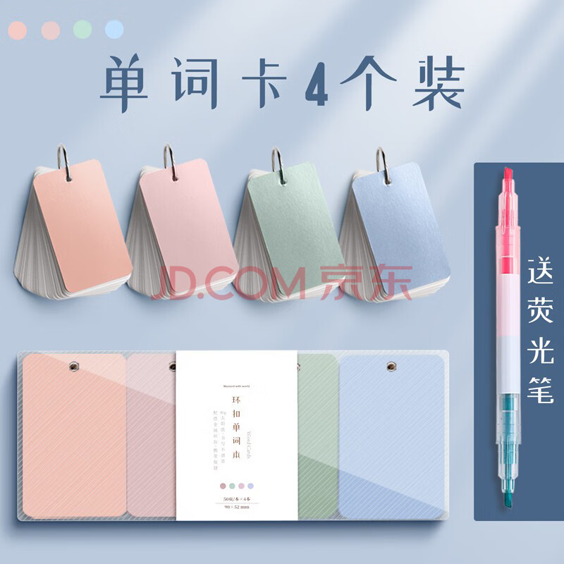 商品相册:金值 莫兰迪400张空白英语单词卡片 白色硬卡纸便携活页高中随身记背记忆环扣式打孔手写学习自制字卡第