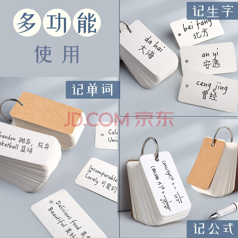 商品相册:金值 牛皮纸400张空白英语单词卡片 白色硬卡纸便携硬质活页高中随身记背环扣式打孔手写学习自制字卡小学生第