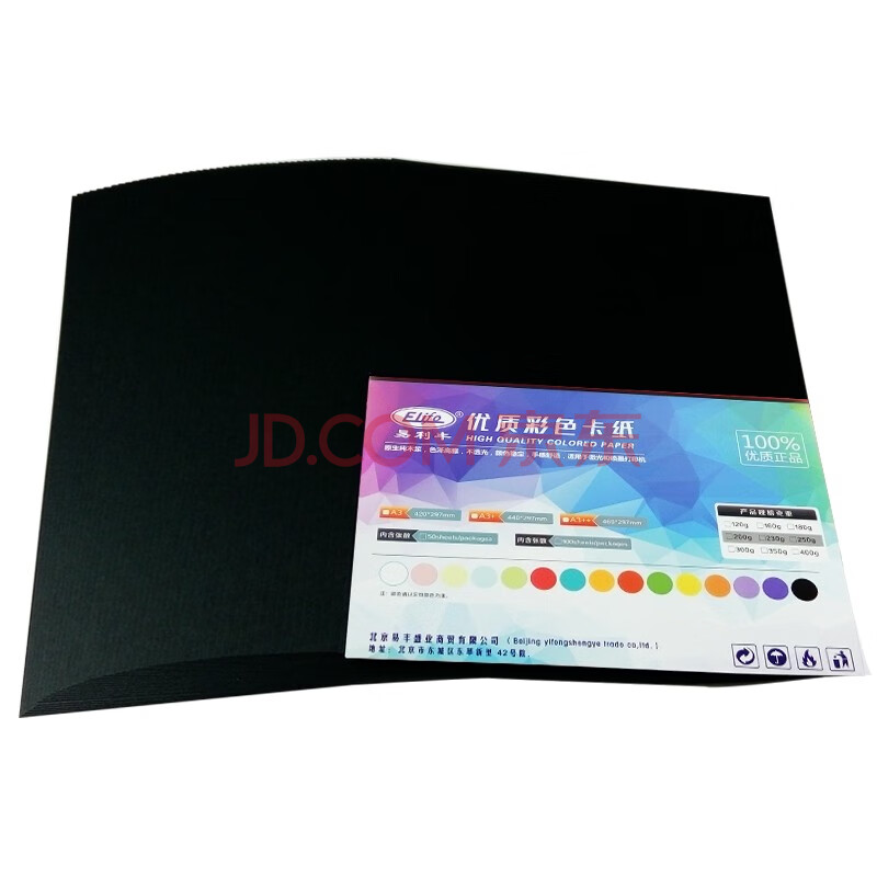 商品相册:易利丰 黑色卡纸a3黑卡纸硬纸厚纸 折纸手工彩纸黑色纸A3黑纸打印纸 彩色纸儿童绘画摄影美术纸160g50张第