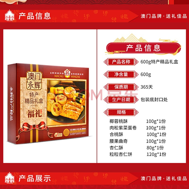 商品相册:永辉澳门手信福礼礼盒600g年货送礼蛋卷休闲零食礼包饼干糕点澳门特产第