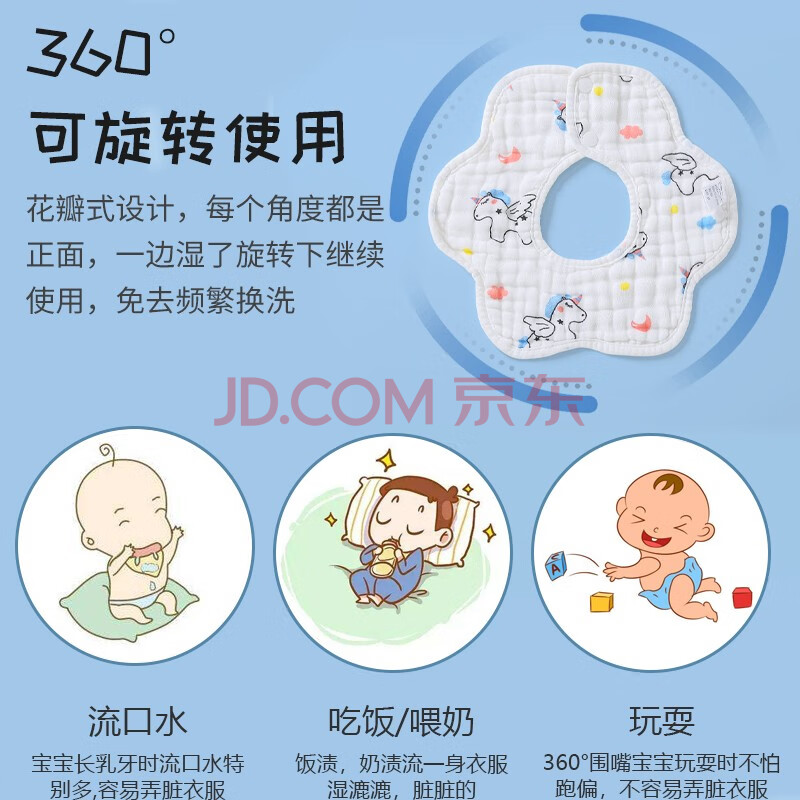 商品相册:童颜婴儿口水巾纯棉纱布围嘴宝宝吃饭新生儿防吐奶360度旋转围兜3条装第