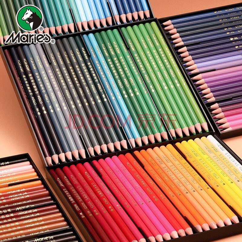 商品相册:【全网低价】马利(Marie's)水溶性彩铅120色 盒装学生儿童绘画涂色可溶性彩色铅笔 加粗笔芯原料饱满上色均匀C7525-120美术写生第