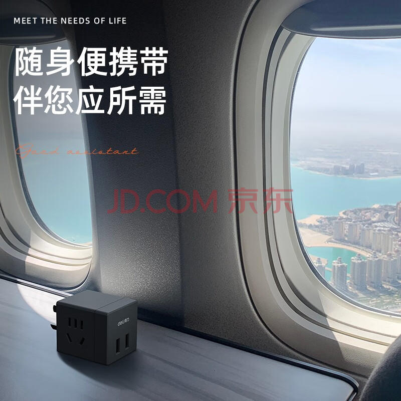 商品相册:得力(deli)魔方智能USB插座 旅行转换插头 转换插头/魔方插座/魔方转换器 2孔+2USB 无线魔方33626 深灰第