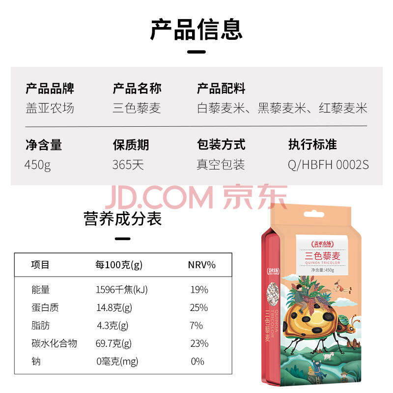 商品相册:盖亚农场 三色藜麦450g 红黑白藜麦米 杂粮饭 米饭伴侣 真空装第