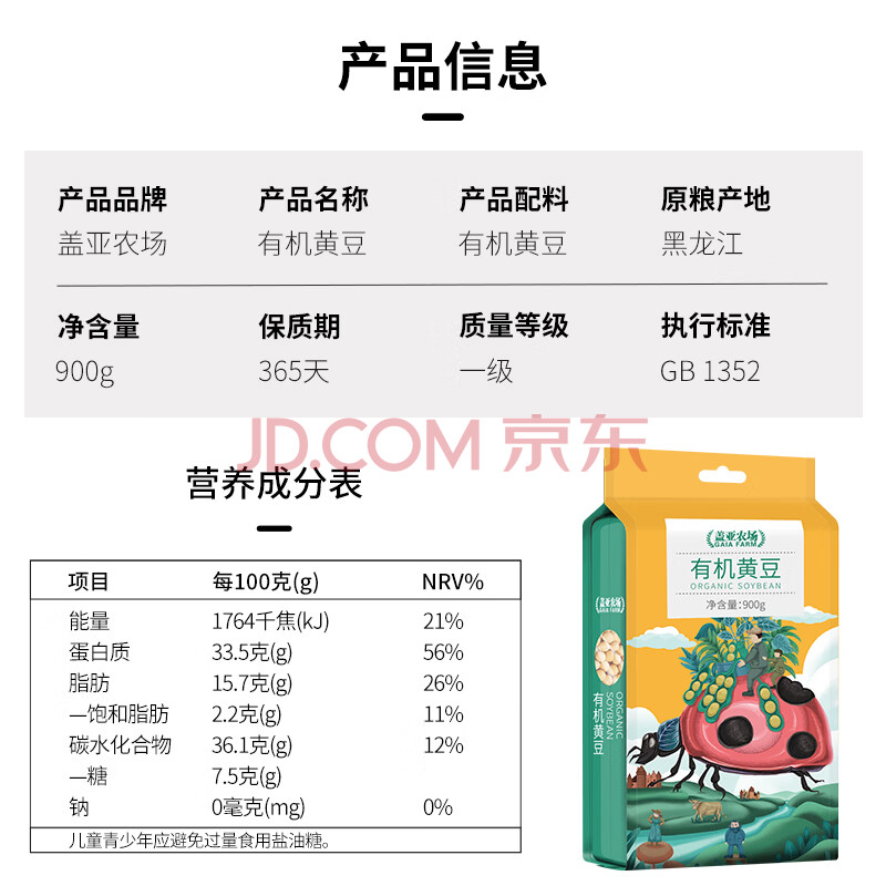 商品相册:盖亚农场有机黄豆1.8斤打豆浆专用 非转基因东北大豆 真空装第