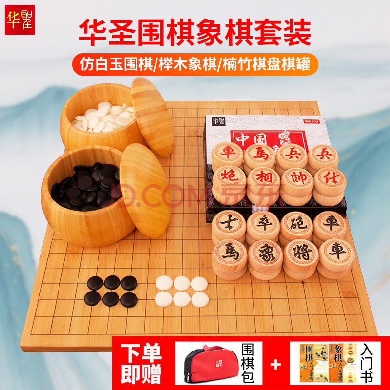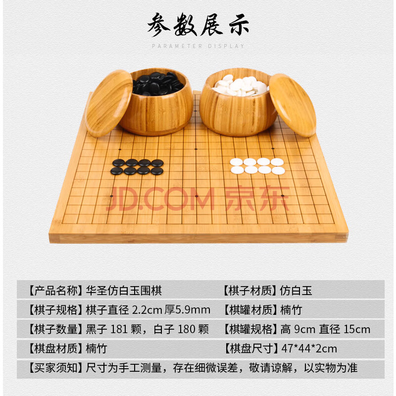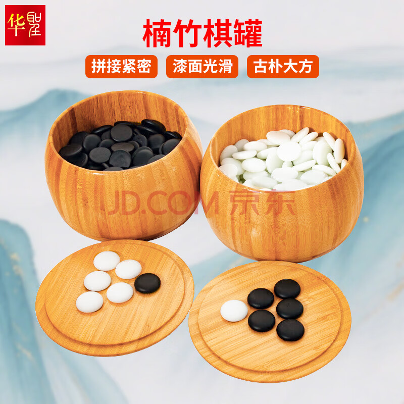 商品相册:华圣仿白玉围棋套装5公分榉木象棋露营 楠竹棋罐棋盘 361颗W-010 赠书第1张/共8