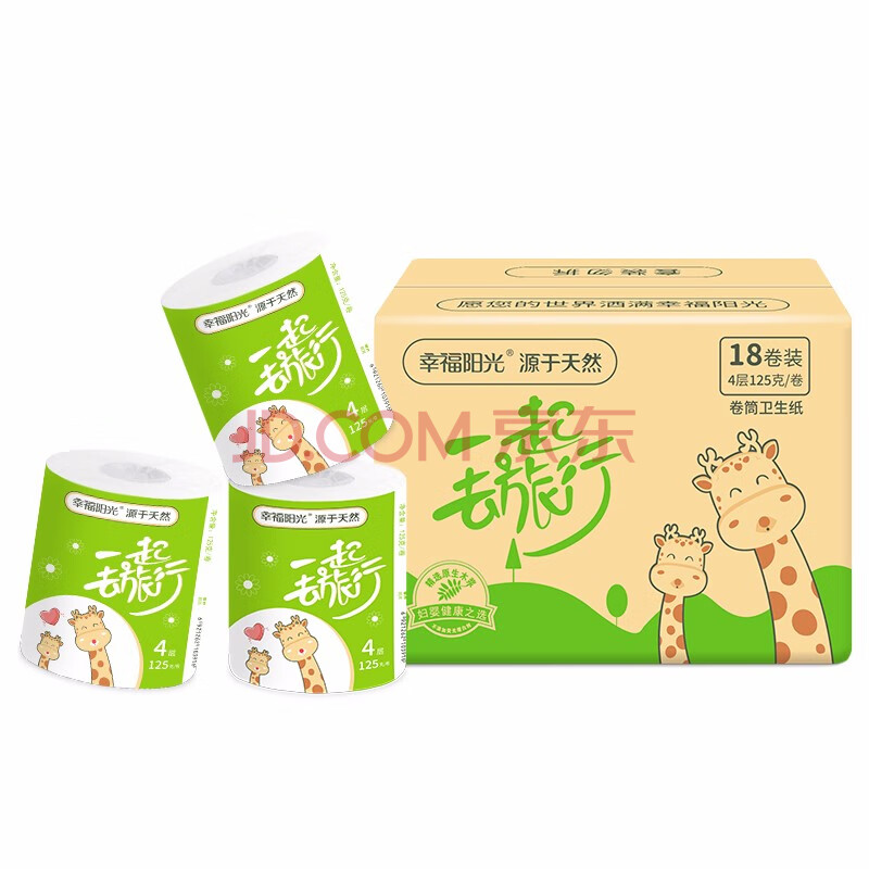 商品相册:幸福阳光卷纸 经典系列 4层125克*18卷 有芯压花卷筒卫生纸第