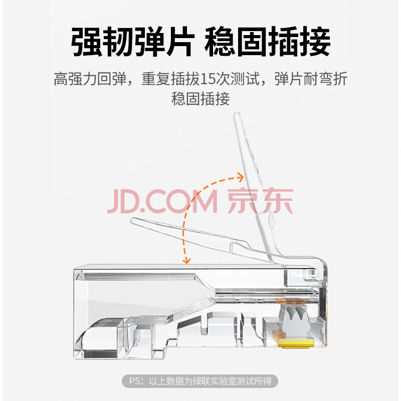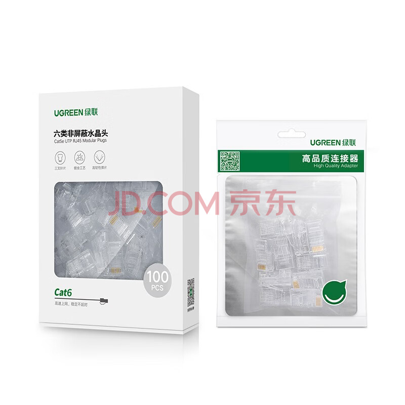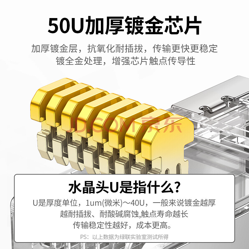 商品相册:绿联六类网线水晶头 6类千兆网络接头 50U镀金工程级RJ45电脑网线连接器CAT6非屏蔽水晶头100个 20840第