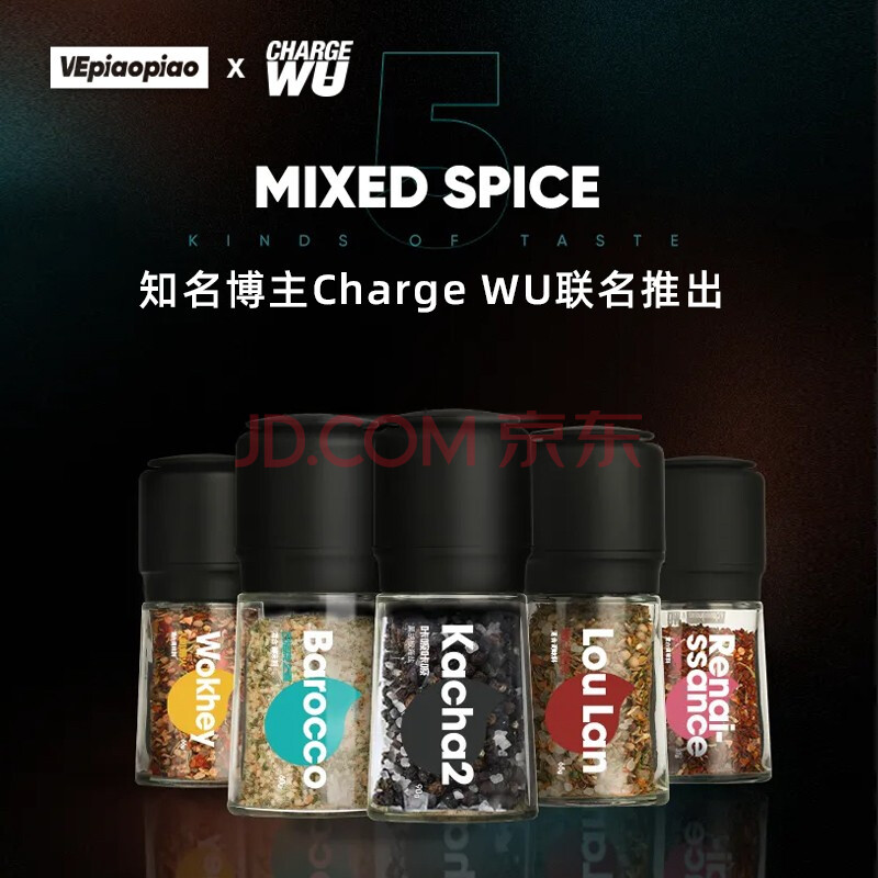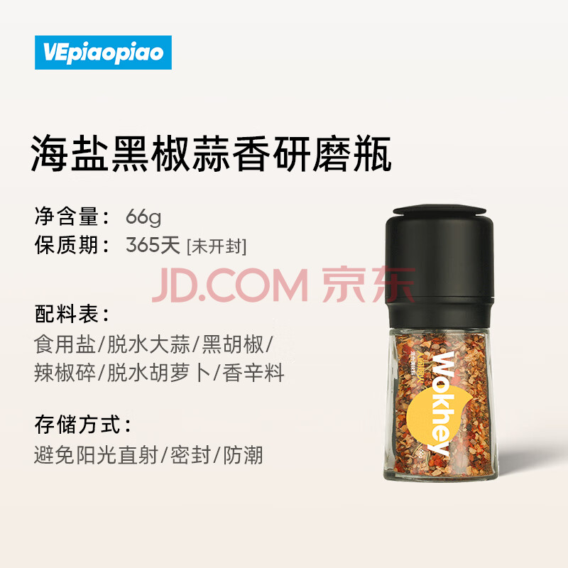 商品相册:VEpiaopiao人间烟火海盐黑椒蒜香研磨瓶烧烤撒料净含量66g/瓶第