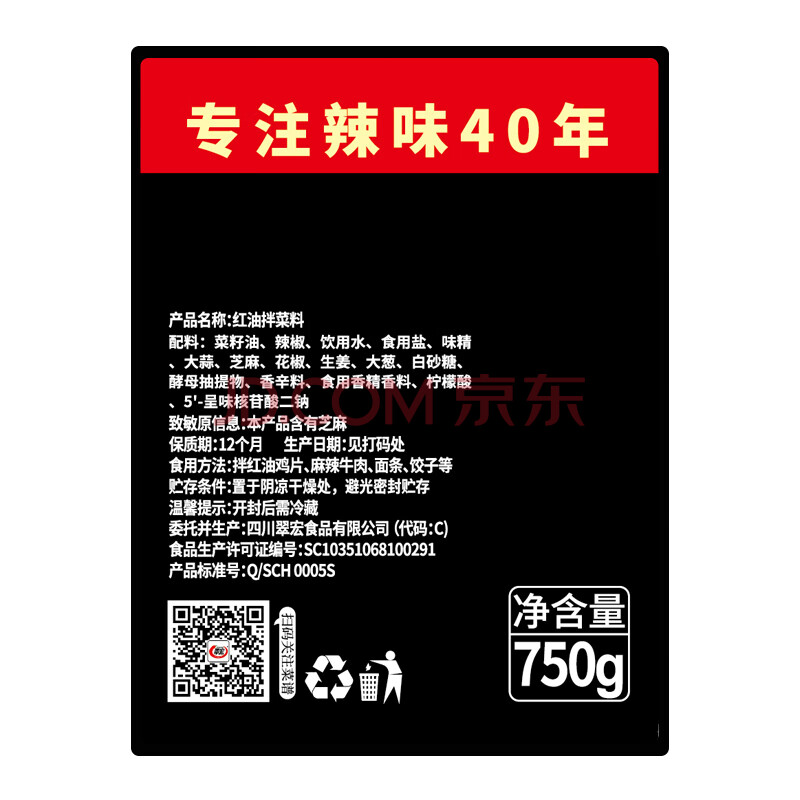 商品相册:翠宏 调味酱 红油拌菜调料 四川油泼辣子 辣椒酱 辣椒油750g第