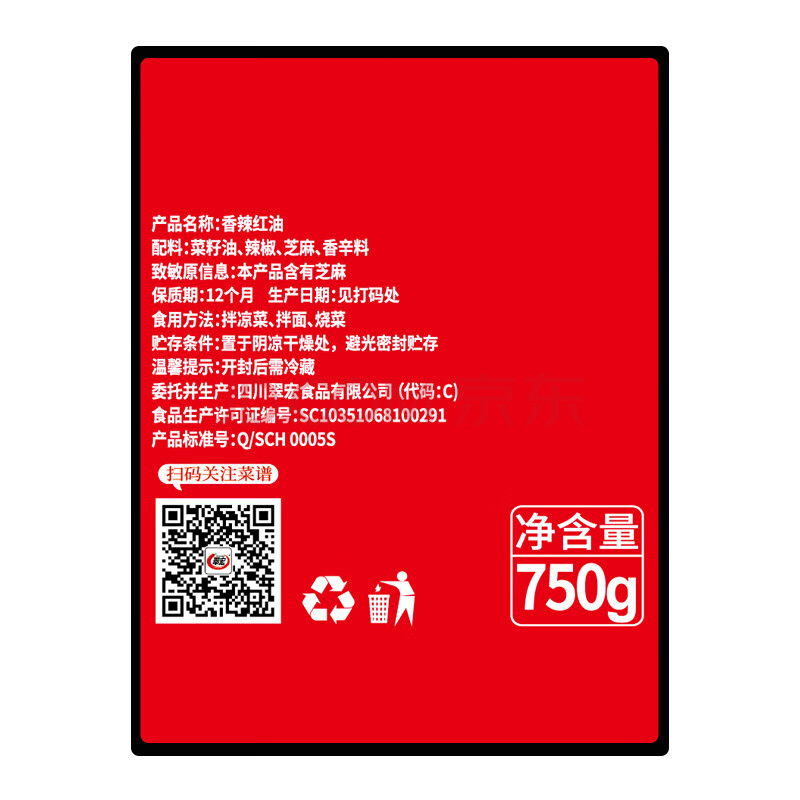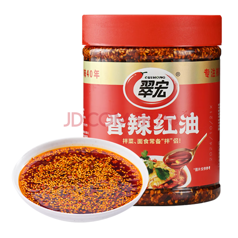 商品相册:翠宏 调味酱 香辣红油调料凉拌下饭 四川辣椒油 辣椒酱 油泼辣子750g第