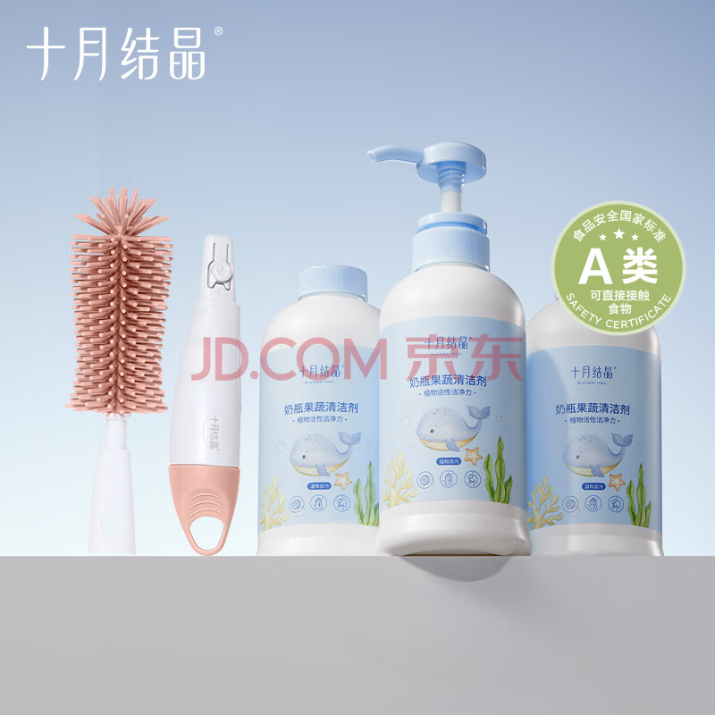 商品相册:十月结晶奶瓶清洗剂果蔬专用清洗剂400ml*1瓶+2袋+奶瓶刷组合第