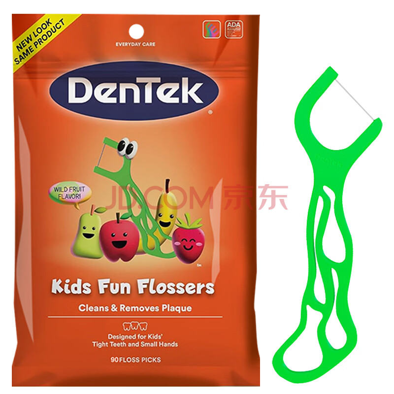 商品相册:德泰克DenTek儿童牙线棒90支 宝宝专用3-6-12岁超细滑 含氟防蛀水果味第
