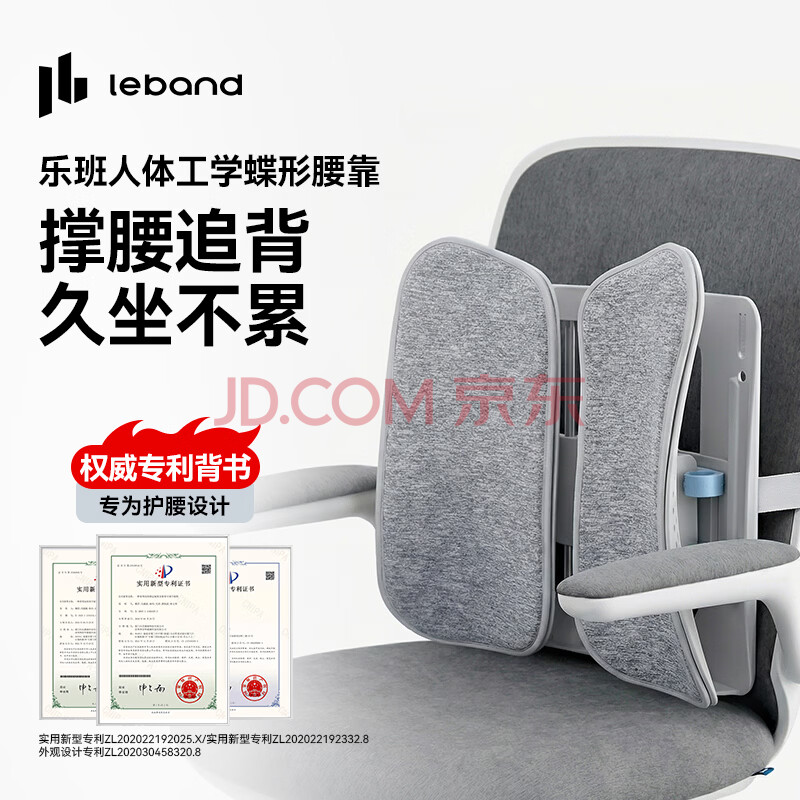 商品相册:乐班护腰腰靠靠垫人体工学背靠腰托办公室护腰久坐神器 蝶形记忆棉款第