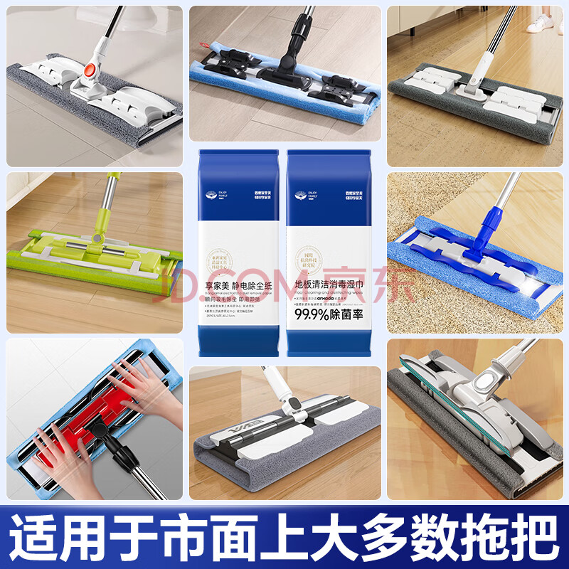 商品相册:享家美 拖地湿巾80片4包静电除尘纸一次性家用大号免手洗平板懒人拖把第