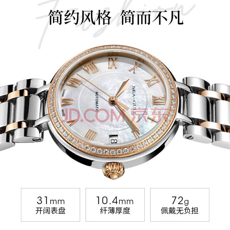 商品相册:海鸥(SEAGULL)手表女士自动机械表 贝母盘日历女士手表 生日礼物女表717.417L第