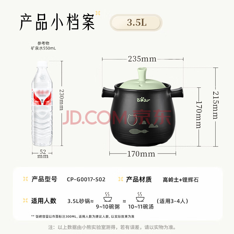 商品相册:小熊(Bear)砂锅 煲汤锅耐高温不开裂3.5L沙锅 炖锅燃气灶陶瓷锅中药锅第1张/共6
