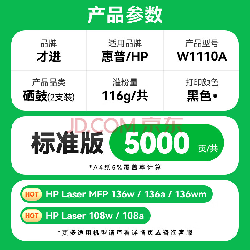 商品相册:才进适用惠普136w硒鼓带芯片laser mfp 136a/nw/wm打印机墨盒w1110a粉盒110A 108w 138p易加粉108a复印一体机第