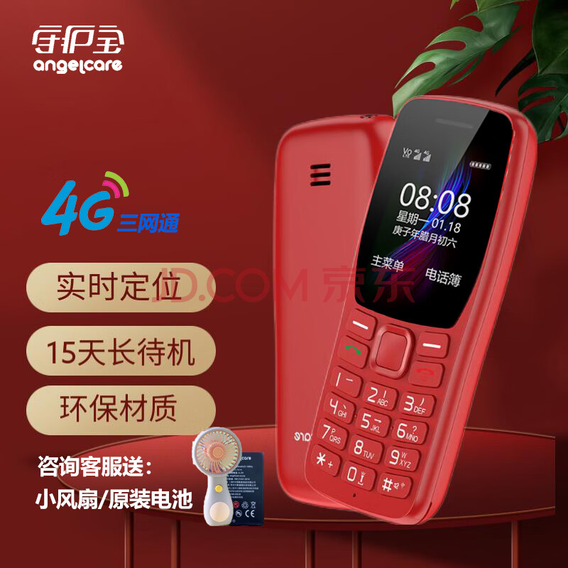 商品相册:守护宝 K210 红色 4G全网通 老年人手机带定位 直板按键 老人老年手机 儿童学生备用功能机第
