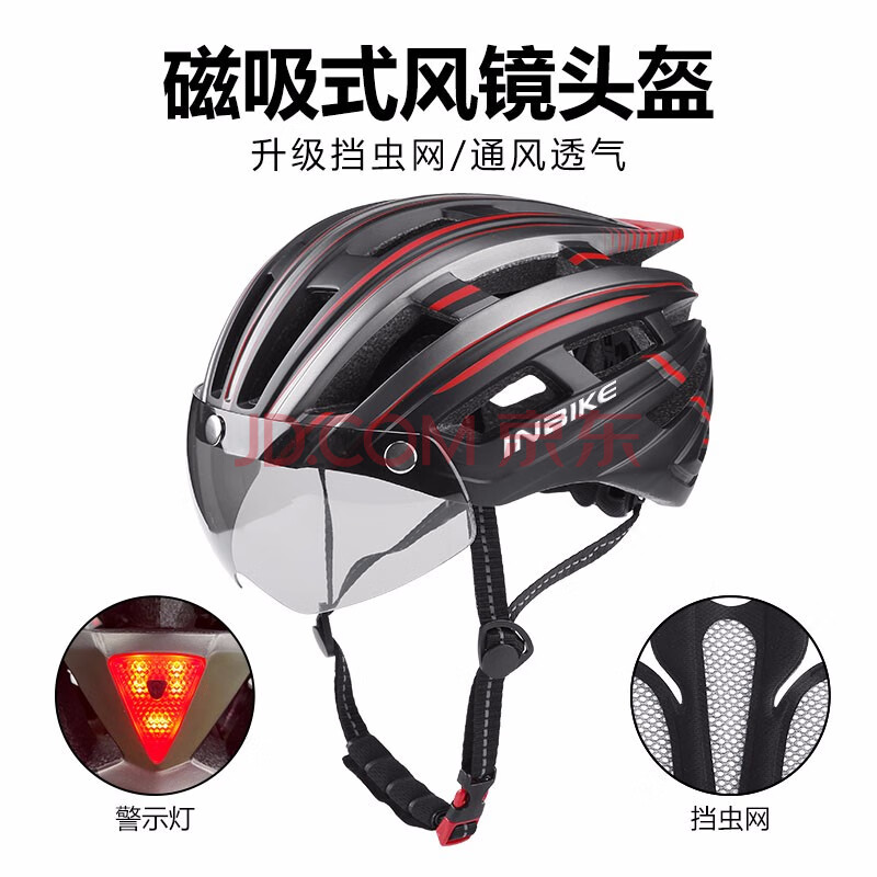 商品相册:INBIKE 山地公路自行车带风镜一体成型骑行头盔男女安全帽子装备第