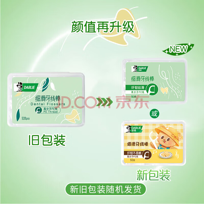 商品相册:好来(原黑人)细滑牙线棒200支纤韧丝滑不易伤牙龈新旧第